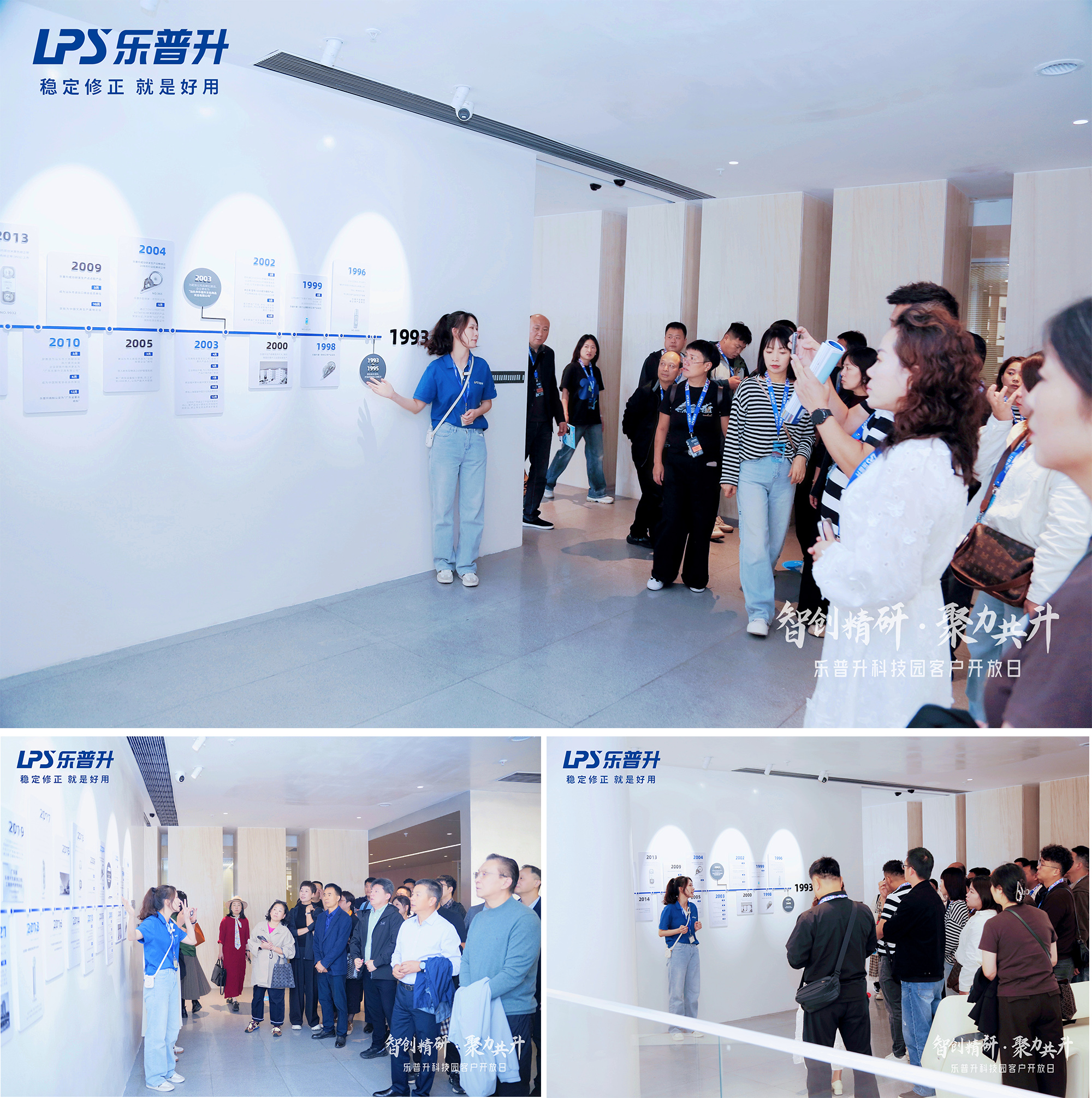 在專業(yè)人員的陪同下,嘉賓們首先參觀了"樂普升30年時光軌跡"展區(qū),