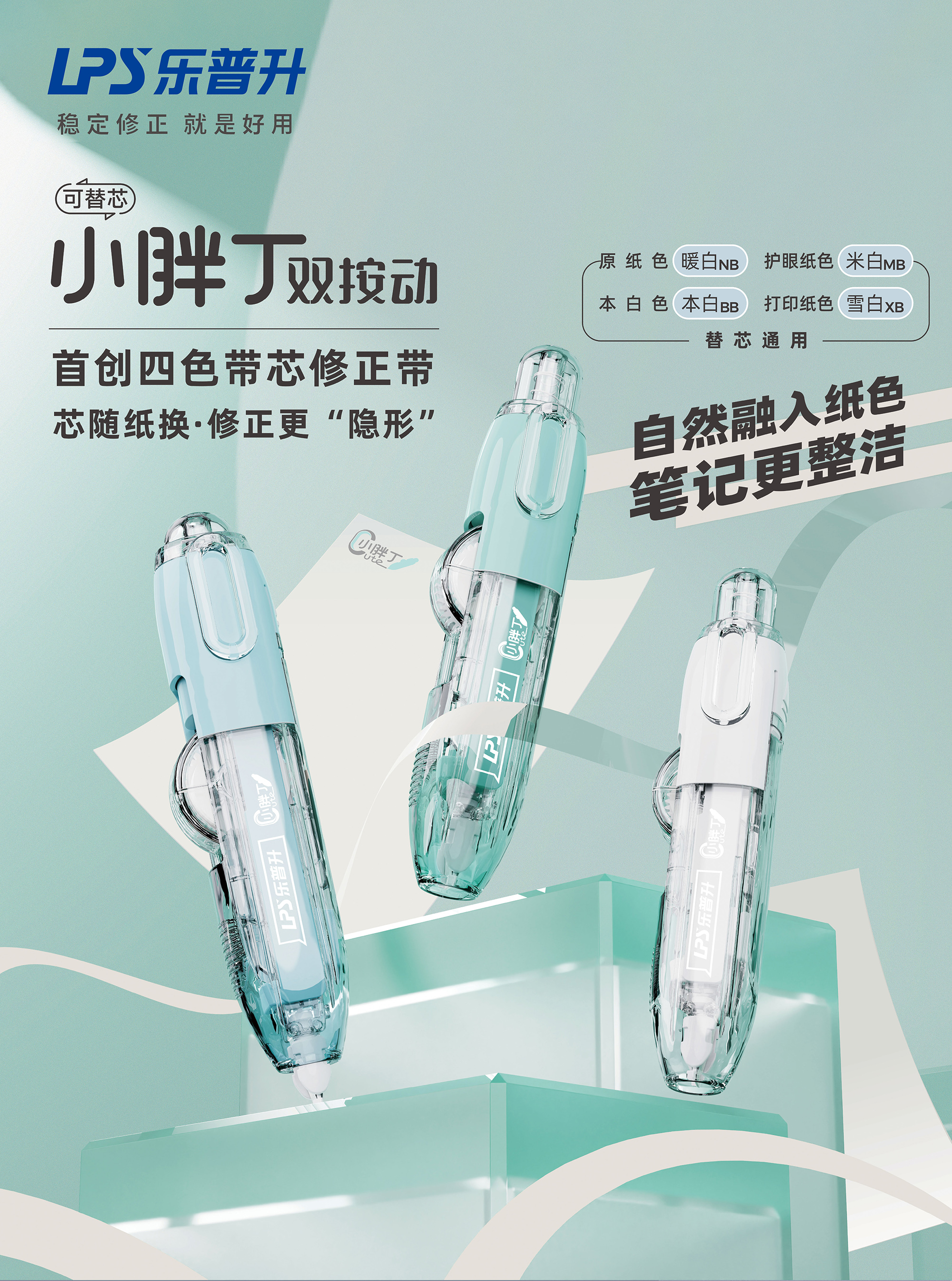 樂(lè)普升「小胖丁」雙按動(dòng)修正帶憑借首創(chuàng)的四色帶芯系統(tǒng)和專利雙按動(dòng)結(jié)構(gòu),建立起明顯的產(chǎn)品差異化優(yōu)勢(shì),滿足市場(chǎng)對(duì)“隱形修正”日益增長(zhǎng)的需求。