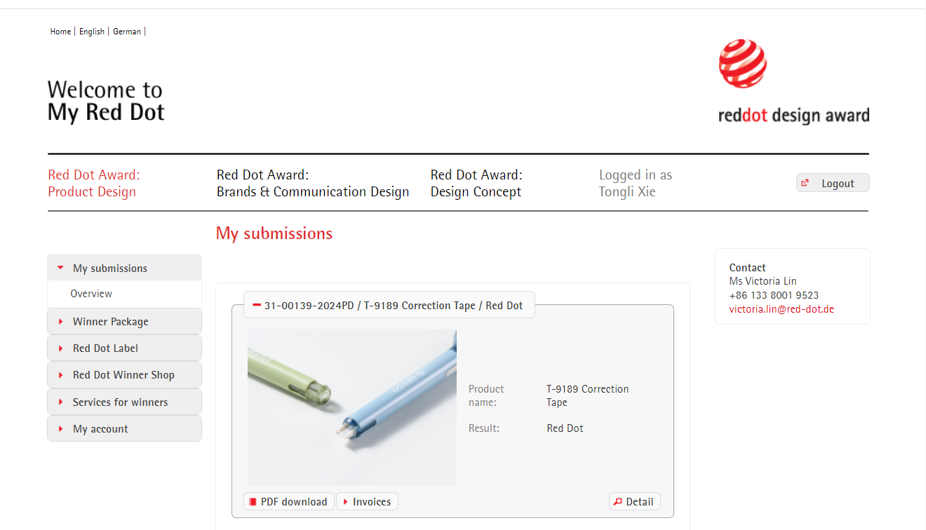 近日,備受矚目的2024德國紅點獎(Red Dot Winner 2024)獲獎名單正式揭曉,樂普升9189筆式修正帶憑借顛覆性的創新設計,從全球眾多參賽作品中脫穎而出,成功斬獲產品設計獎。