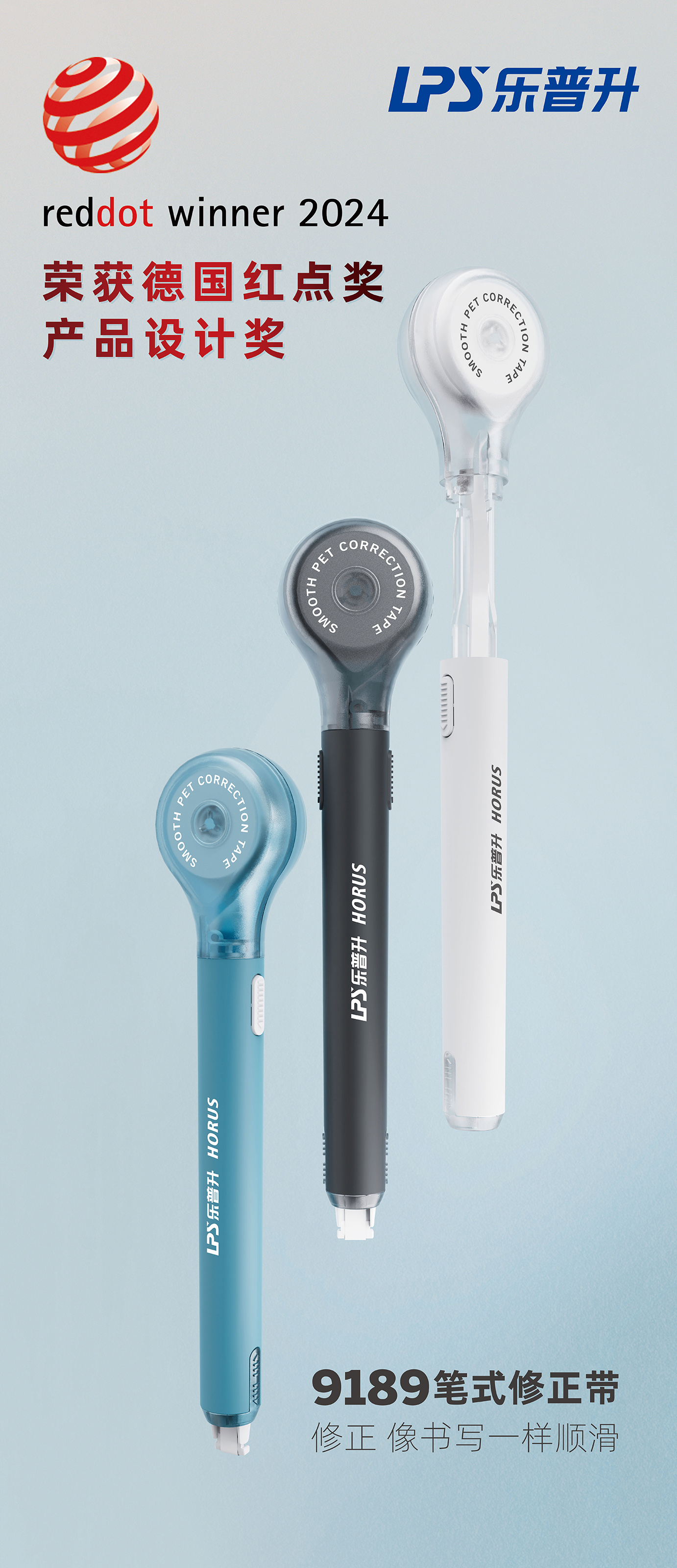 樂普升9189筆式修正帶本次斬獲德國紅點獎,距離去年榮獲2023年第四屆金蘆葦優秀產品設計獎與思誕行學生文具類創新獎雙料獎項不過數月。