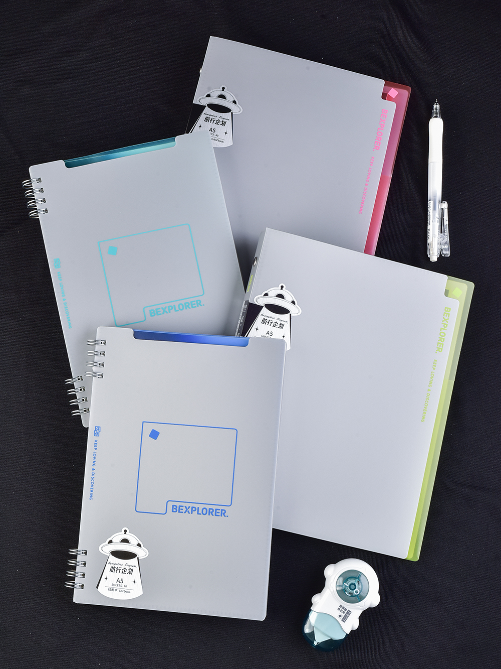 推拉式活頁夾,開合省力可換芯;分段式線圈環,反面書寫不硌手。